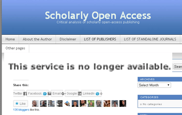 “Jeffrey Beall, associate professor and librarian at the University of Colorado Denver, has decided to no longer maintain or publish his research or blog on open-access journals and ‘predatory publishers,’”. “CU Denver supports and recognizes the important work Professor Beall has contributed to the field and to scholars worldwide. CU Denver also understands and respects his decision to take down his website scholarlyoa.com at this time. Professor Beall remains on the faculty at the university and will be pursuing new areas of research.”