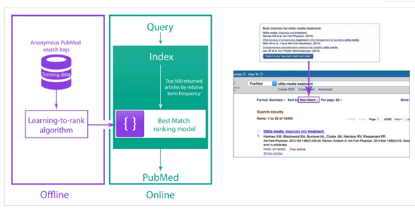 לאחרונה פותח אלגוריתם לקביעת הרלוונטיות של החיפוש, שמבוסס על למידת מכונה . הוא כולל כ- 150 סיגנלים שונים לאיתור התוצאות הרלוונטיות ביותר, חלקם קשורים להתאמה בין מילות החיפוש והרשומה ב- Pubmed , וחלקם ספציפיים לרשומה כגון סוג פרסום, תאריך פרסום ומספר הצפיות בתקציר בשנה האחרונה.