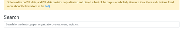 אחד מהם שמתמקד במידע ביבליוגרפי מדעי הוא Scholia. Scholia הוא יישום ,שכולל גם מנשק ווובי שעושה שימוש דינמי on the fly במידע ב- Wikidata לצורך יצירת פרופילים של חוקרים, ארגונים, כתבי עת , מו"לים, עבודות מדעיות ונושאים מדעיים, והצגתם למשתמש גם במנשק ויזואלי מעניין. כדאי לדעת, שמאחר והמידע ב-Wikidata בהקשר של חומר ביבליוגרפי מדעי מצומצם, המידע ב- Scholia לעתים מוטה ולא שלם, כפי שמצוין באתר