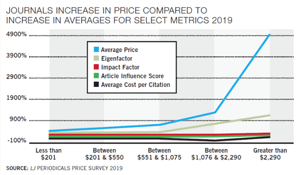 סקר מחיר כתבי עת התפרסם ב- 4 באפריל 2019. הסקר כולל נתונים על מחירי כתי העת , ודן בהשלכות לגבי הספריות והמעבר למודל הגישה הפתוחה. הסקר העדיף, ככול שהתאפשר, להשתמש במחירי כתבי העת בגרסה מודפסת, והתבסס על נתונים ממספר מאגרי מידע – Clarivate Analytics (formerly ISI) Arts and Humanities Index, Science Citation Abstracts, Social Science Citation Index שכוללים כותרים שבשימוש ספריות אקדמיות גדולות, EBSCO’s Academic Search Ultimate שמיצג כתבי עת בספריות אקדמיות וציבוריות ו- EBSCO’s MasterFILE Premier שכולל כותרים שמייצגים ספריות ציבוריות קטנות וספריות בתי ספר.