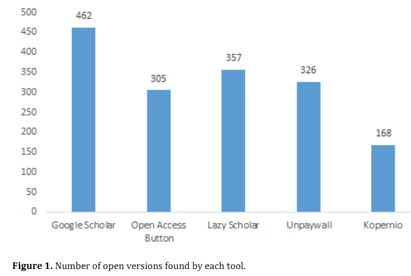 ממסקנות המחקר: למרות שגוגל סקולר מצא יותר מאמרים בגישה פתוחה מכול אחד מהכלים, 2 הכלים lazy Scholar ו- Open Access Button מצאו מאמרים שלא נמצאו על ידי כלים אחרים כולל גוגל סקולר.
