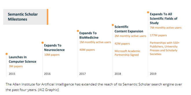 על פי דברי אחראים ב Allen Institute for Artificial Intelligence – AI2, המוסד שפיתח את מנוע החיפוש, חל גידול במאגר המידע שלו ובתחומי המדע שהוא מכסה. מאגר המידע שלו גדל מ-40 מיליון מאמרי מחקר שהתמקדו בתחום המחשבים וביורפואה ל- 175 מיליון מאמרים בכול תחומי המדע כולל מדעי המדינה, סוציולוגיה, אמנויות ופילוסופיה. במקביל לגידול זה חל גידול במספר המשתמשים במנוע.