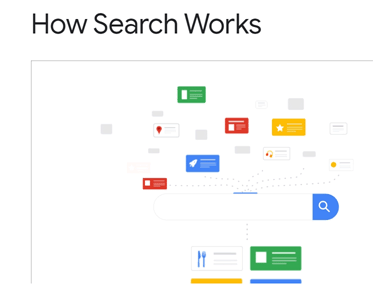 - מידע מהווב הפתוח – דפי ווב שגוגל סורקת וכוללת באינדקס של מנוע החיפוש שלה תוך התחשבות בהוראות בעלי האתרים . כלי המפתחים של גוגל מאפשרים לבעלי האתרים לבצע אופטימיזציה לאתרים שלהם כדי לשפר אתת הצגתם בתוצאות החיפוש במטרה להשיג יותר תנועה בחינם מאנשים שמחפשים את המידע והשירותים שהם מציעים.